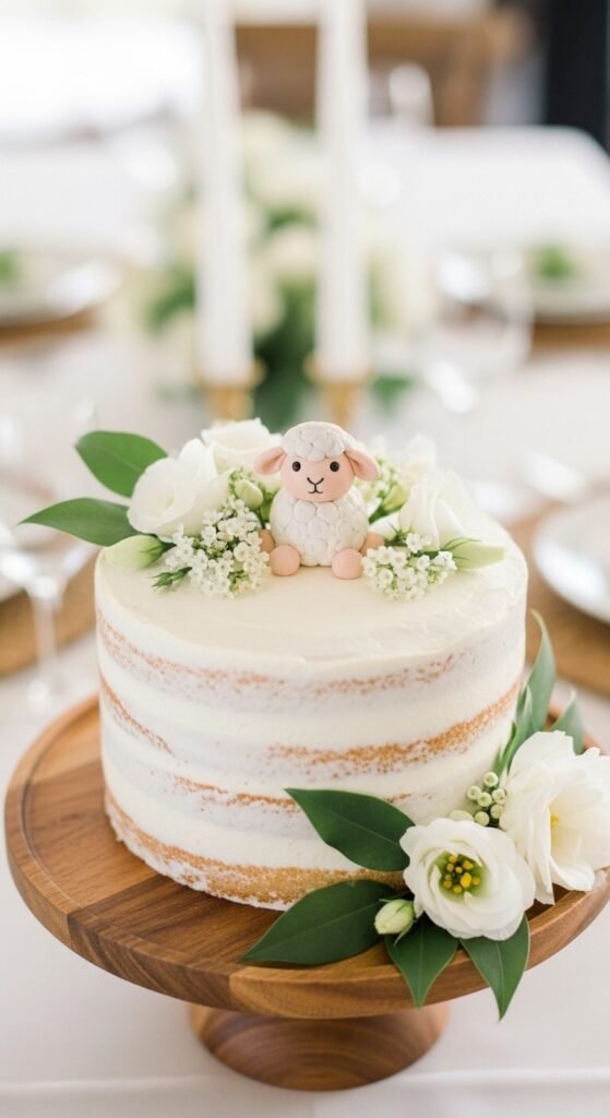 A lamb cake topper works for baby showers, Easter, or a first birthday. Make a simple lamb from air-dry clay — roll a body, attach four small leg cylinders, and shape a round head. Let it dry, then paint it white with a light wash of blush or gray. Seal it with a matte finish. The whole thing costs under $3 in materials. It’s reusable, which makes it even better value. Guests will ask where you got it.