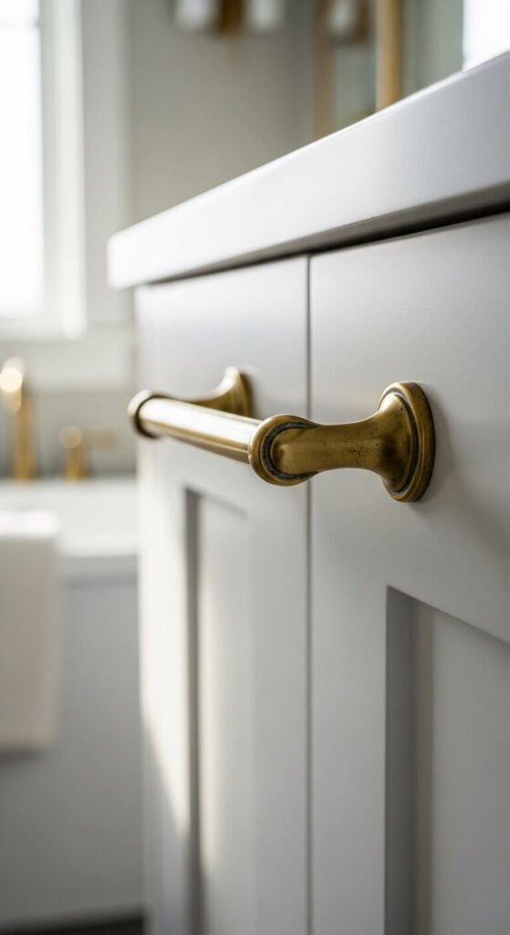 Amazon sells brass cabinet handles for $3-8 each. Installation takes 10 minutes with a screwdriver—no professional needed.