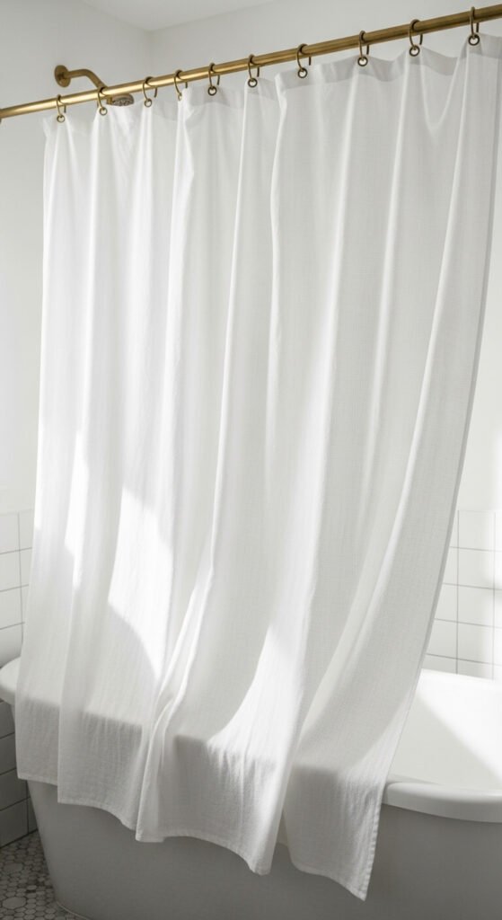 Target and Amazon sell cotton shower curtains starting around $15. Look for white, cream, or pale blue options.