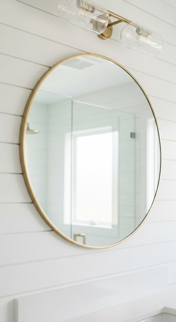 Rectangular builder mirrors feel generic and institutional. A round mirror softens harsh bathroom lines and reflects light differently.