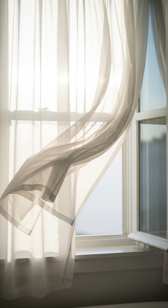 Lightweight cotton or linen sheers cost $15-30 per panel at Target or Amazon. They’re easy to hang with basic curtain rods.