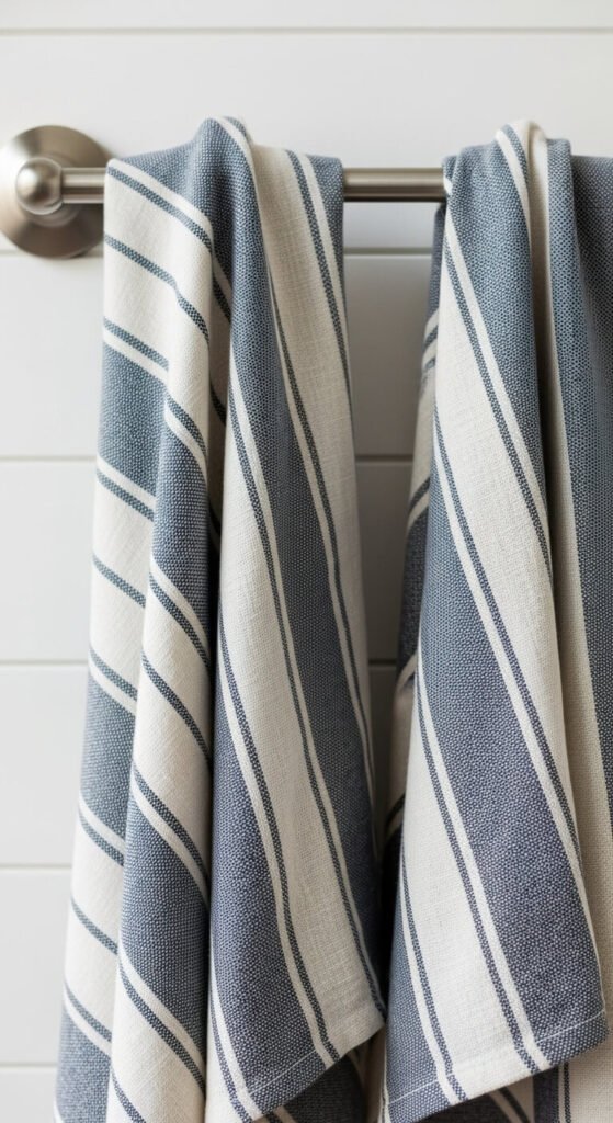 Stripes or simple patterns add visual interest without overwhelming small spaces. Swap them out seasonally for an easy refresh.