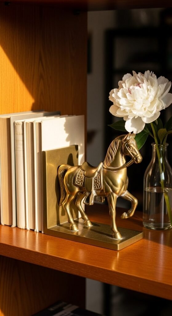 Bookends don’t have to hide at the edges. Choose sculptural or colorful ones that add to your design. They hold books while serving as decor themselves.