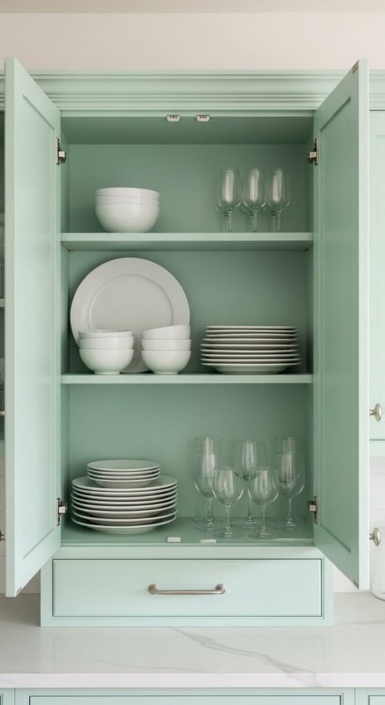 Paint Cabinet Interiors a Cheerful Color