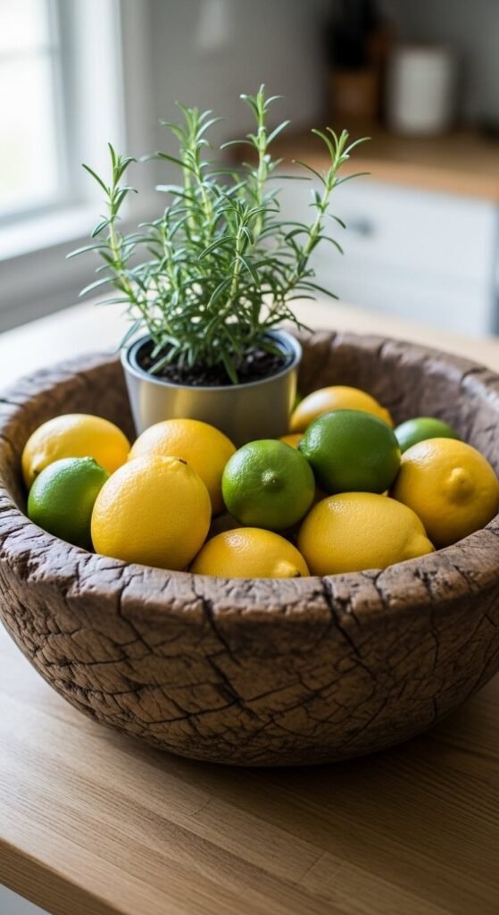 Hunt for authentic bowls at antiques markets or buy new versions that mimic the look. Fill with items you’ll actually use—lemons for cooking, small pots of herbs, or colorful vegetables. Change contents weekly to keep things feeling current. The bowl’s rustic texture contrasts beautifully with modern kitchens and creates a focal point that feels both practical and decorative.