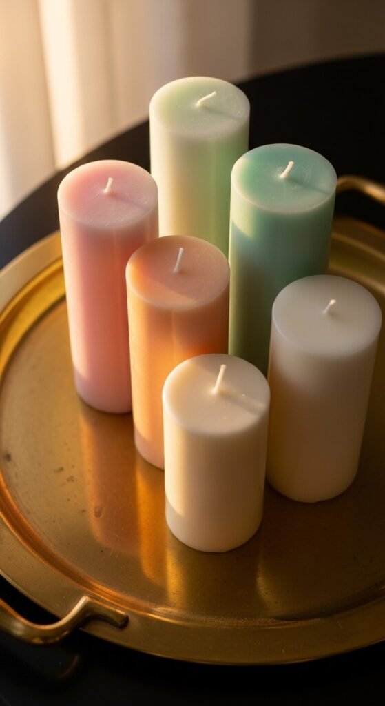 Layered Pastel Candles on Trays