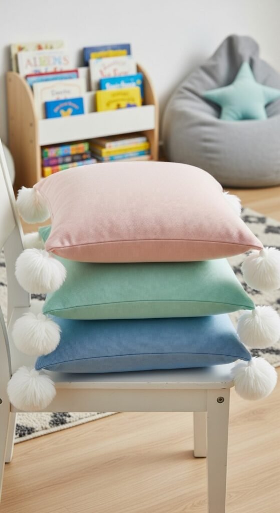 Make different sizes for variety. Small pompoms work for accent pillows. Bigger ones add drama to floor cushions. This simple update transforms basic pillows into bunny friends.