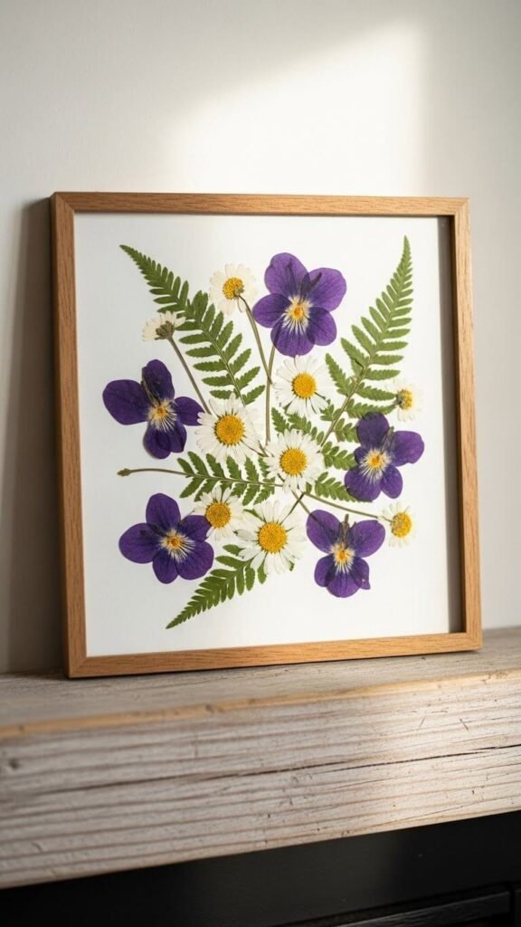 Press wildflowers between heavy books for two weeks, then arrange in a glass frame. This free art celebrates your local spring blooms. Use flowers from your yard or a nature walk. Float them on white or kraft paper inside the frame. The delicate, preserved petals look professional but cost nothing. Create several small frames for a gallery effect. Change the flowers each spring for new art.
