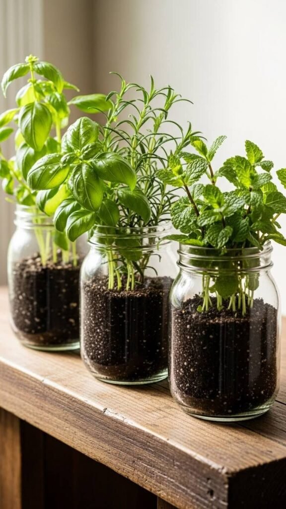 Mason Jar Herb Garden Display