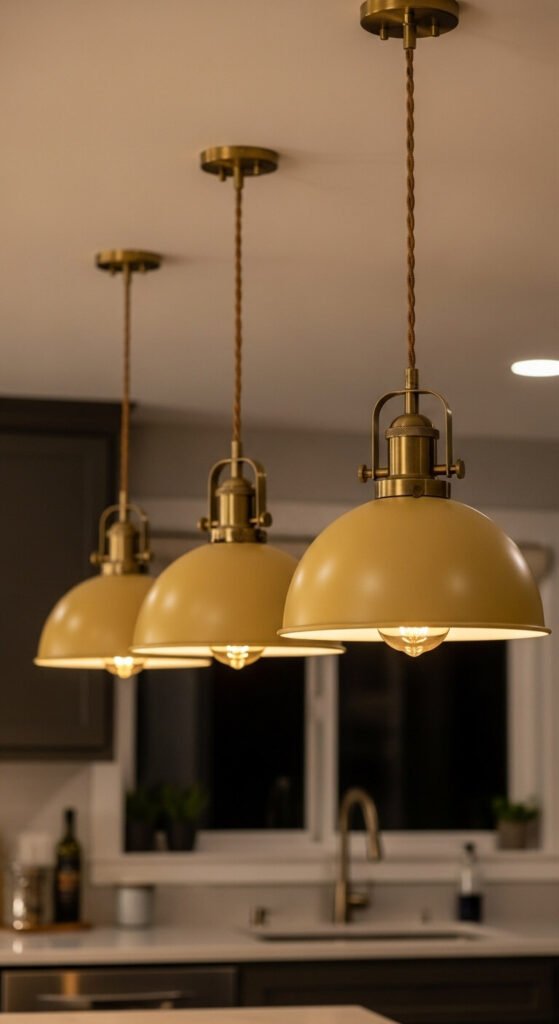 Lighting transforms rooms. Hang yellow pendants over your island or table. The glow creates warmth while the fixtures add color overhead. Choose shades in metal, glass, or ceramic depending on your budget. Installation is straightforward if you replace existing fixtures. Prices start around $40 each. The unexpected pop above eye level feels fresh and modern. Dimmer switches let you adjust brightness for different moods and times of day.