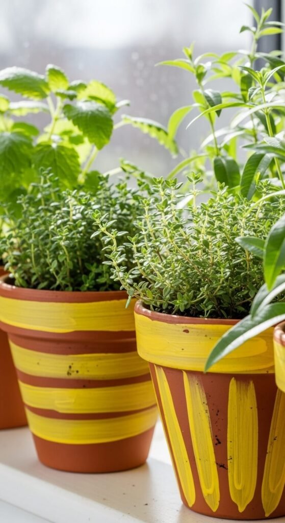 Grow lemon-scented herbs in pretty pots. Lemon balm, lemon thyme, and lemon verbena smell incredible and flavor dishes beautifully. Paint terracotta pots with yellow stripes or polka dots using acrylic craft paint. Line your windowsill with them. Seeds cost about $2 per packet. Water when soil feels dry. Pinch leaves for tea or garnishes. The greenery brings life to your space while the scent freshens the air naturally.