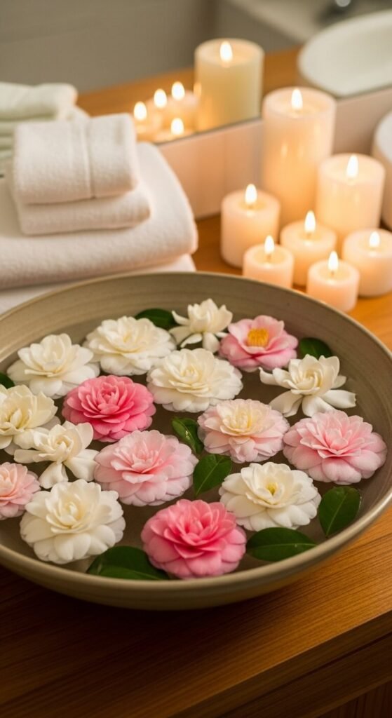 This technique extends the life of flowers that might otherwise wilt. Cut blooms just below the head and let them drift naturally. Add a few leaves or petals for texture. The water reflects light beautifully and creates a spa-like atmosphere. Change the water daily to keep things looking crisp. You can use mixing bowls, pasta plates, or thrift store finds. This costs almost nothing and looks incredibly sophisticated.