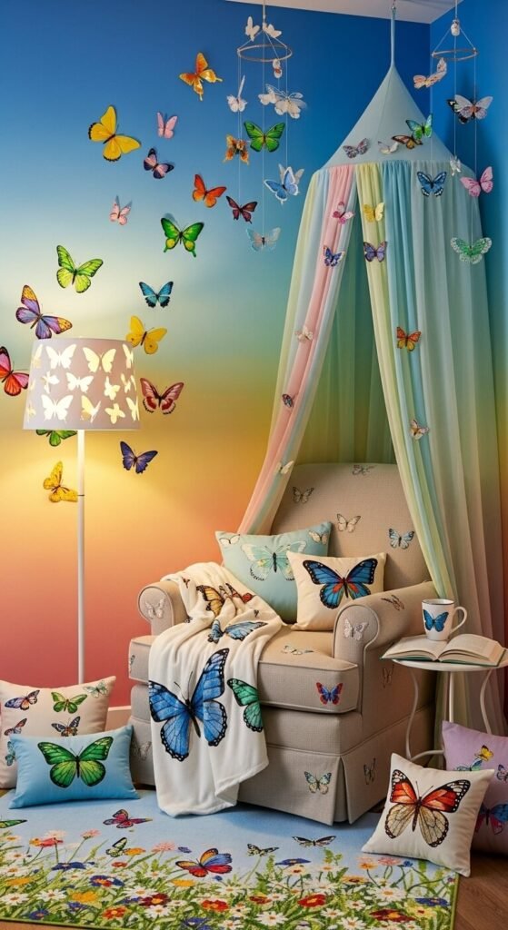 Butterfly decor transforms ordinary spaces into magical sanctuaries. These delicate accents add movement, color, and whimsy without overwhelming your room. Whether you prefer subtle elegance or bold statements, butterfly designs work in any style—from minimalist modern to vintage cottage. The best part? Most butterfly decor is budget-friendly and easy to install yourself. You can create stunning visual impact with simple materials like paper, fabric, or repurposed items. Ready to add some flutter to your home?