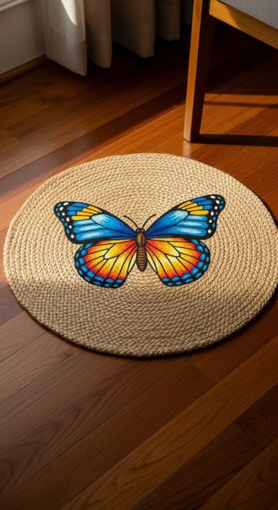 Choose rugs with subtle butterfly patterns or add iron-on patches to plain rugs. Small accent rugs work best in entryways or beside beds. Machine-washable options make sense for high-traffic areas. Look for rugs under $30 at home stores. The butterfly detail adds whimsy without overwhelming the space.