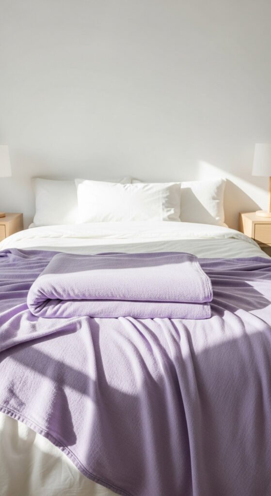 Lavender works with cool and warm bedroom palettes. The extra layer makes beds look professionally styled. Change throws seasonally—store in breathable bags during off months. This affordable update requires zero commitment beyond laundry care.