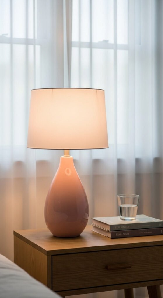 A pink lamp changes your bedside or desk setup instantly. The warm glow creates a cozy atmosphere for reading or working.