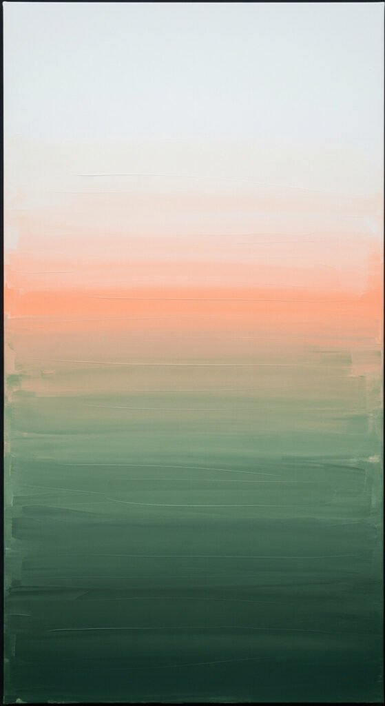 Paint horizontal color bands on a blank canvas, blending where they meet to create gradual color shifts. Use spring shades: sage to mint, or peach to cream.