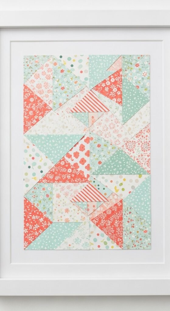 Cut decorative scrapbook paper into geometric shapes—triangles, hexagons, or diamonds—and arrange them into abstract compositions. Glue onto cardstock backings.