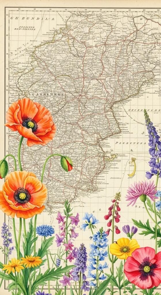 This conversation-starter works in studies, libraries, or dining rooms. The layered quality—old and new, illustration and geography—adds depth. Each piece becomes unique based on which map sections you highlight with florals.