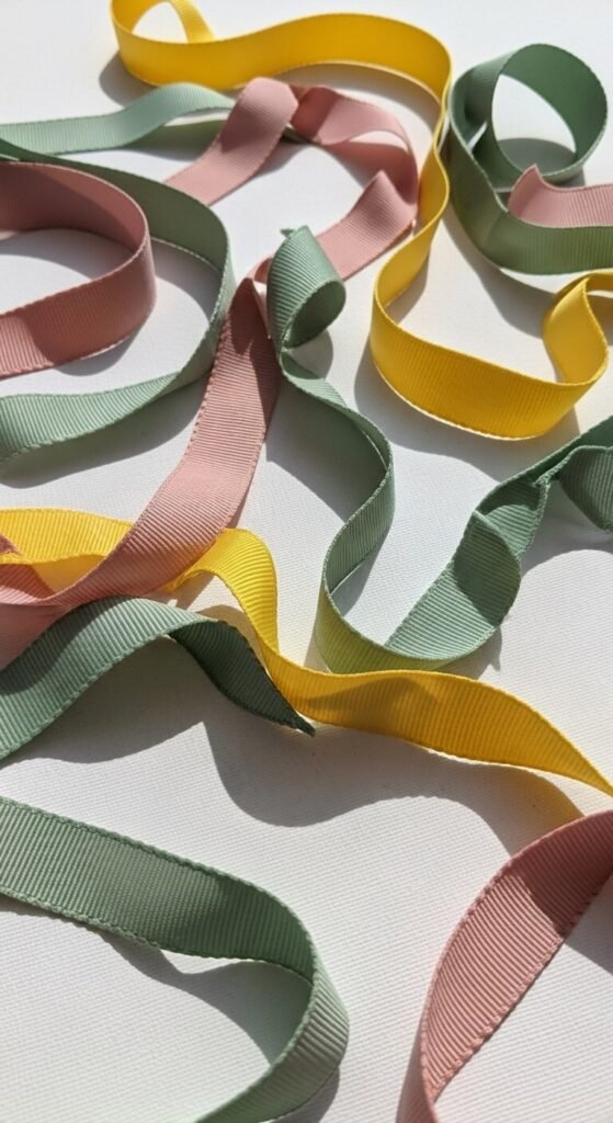 The ribbons catch light differently throughout the day, so the piece constantly changes. Works well in dressing rooms, closets, or bedrooms where soft textures feel appropriate. The slight sheen of ribbon adds subtle elegance.