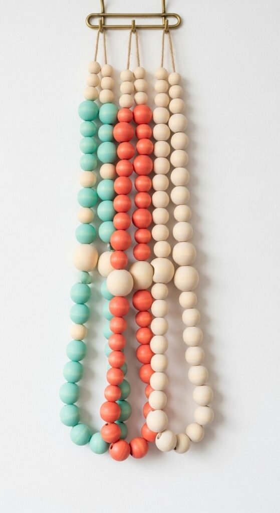 Vary bead sizes for visual rhythm. The vertical lines draw eyes upward, making ceilings feel higher. This Scandinavian-inspired approach adds warmth to minimal spaces without adding visual weight or clutter.