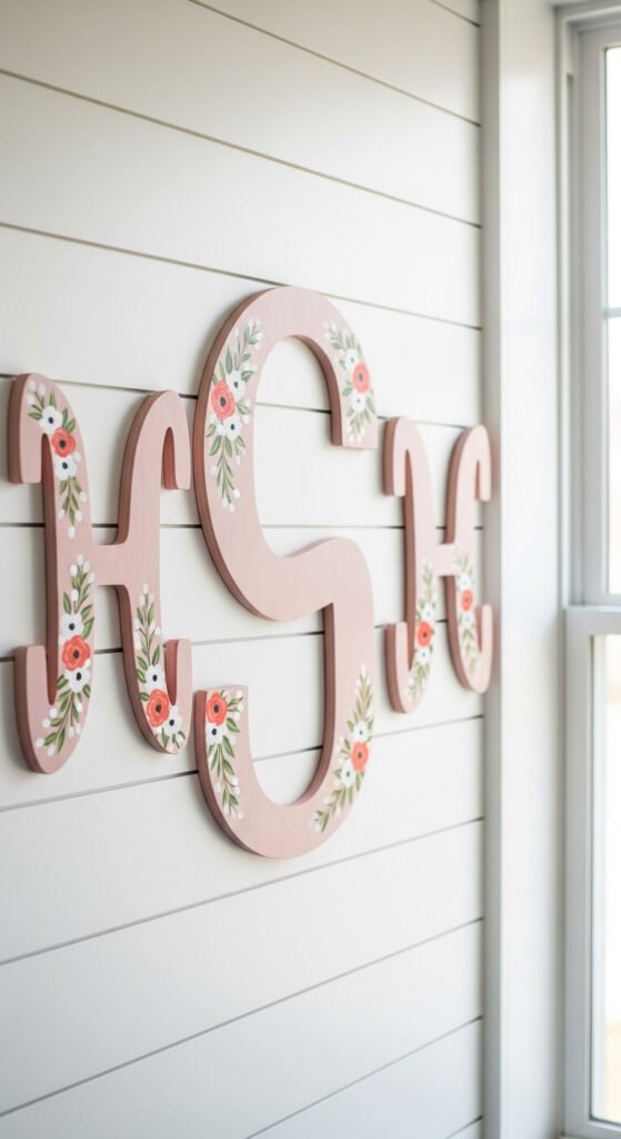 Use a small brush for flower details—simple five-petal shapes work fine. No artistic skill required. The personalization makes this special for nurseries, bedrooms, or entryways.