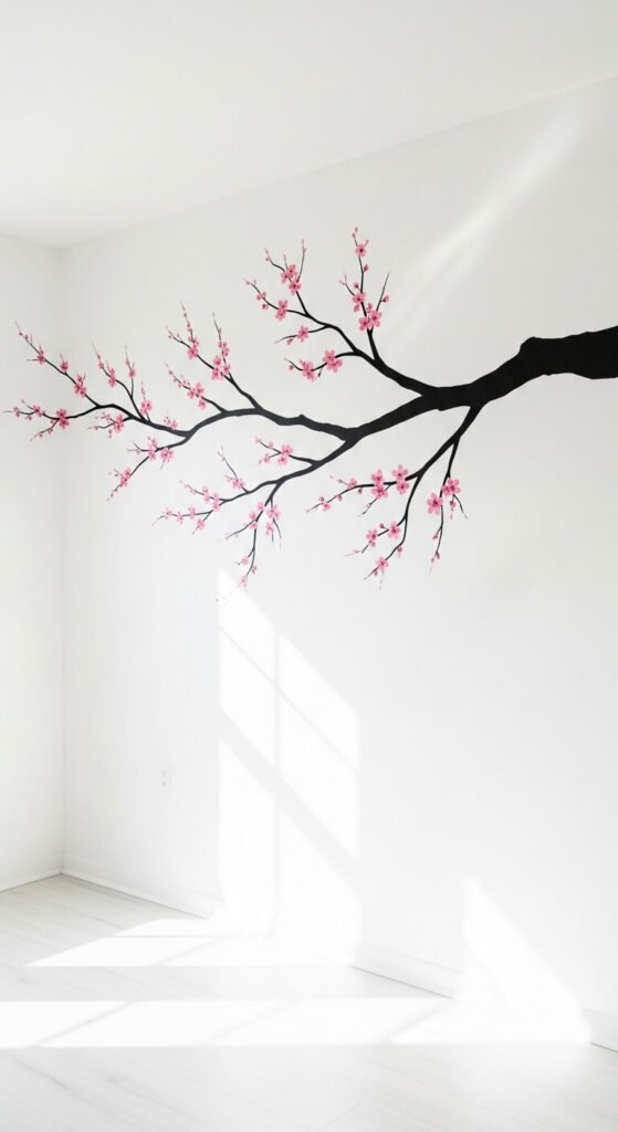 The scale makes a big impact—extend branches across corners or around doorways. Renters can use this trick on large canvas boards instead of walls. Lean oversized painted canvases against walls for the same dramatic effect.