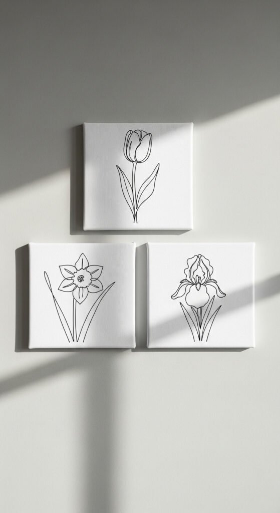 The trick is not lifting your pen—follow the flower’s shape in one continuous motion. Imperfections add charm. Keep backgrounds white for clean, modern appeal.