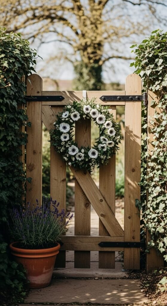 Your front gate is the first thing guests see. A simple handmade wreath made from foraged branches and a few grocery store blooms sets a welcoming tone immediately. Hang it with twine — no tools needed. At the base, place one terracotta pot with something fragrant like lavender or rosemary. Total cost: under $10. This vignette says “someone lives here and loves it.” That feeling is worth every penny. Refresh it weekly by swapping out any wilting stems.