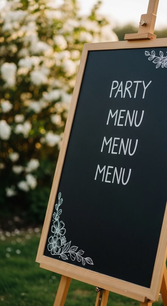 A chalkboard sign gives your party an organized, thoughtful feel. Write out the menu, a welcome message, or even a fun quote that fits your theme. Prop it on a wooden easel near the entrance or beside your food table. You can buy a plain chalkboard at a craft store for under $15. Use chalk pens for cleaner writing that won’t smudge in the breeze. These signs become a natural focal point and make your setup feel pulled-together.