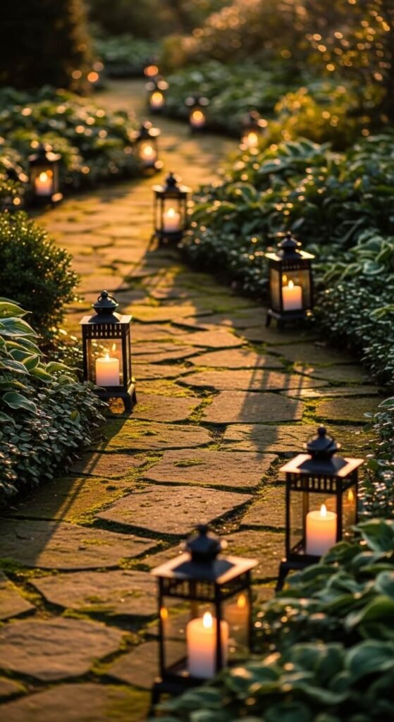 Pathway lanterns do two things: they guide guests and they look gorgeous. Iron or bamboo lanterns with pillar candles inside create a warm, welcoming glow. Space them every three or four feet along any garden path or driveway. Battery-operated LED candles are safer if you have kids or pets around. You can find affordable sets of lanterns at HomeGoods, IKEA, or Amazon. Cluster three together at different heights near seating areas for added effect.