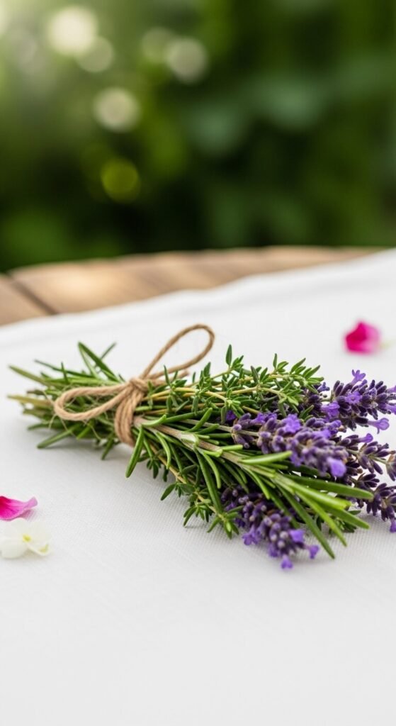Fresh herb bundles are one of the most underrated decor moves. Rosemary, lavender, and thyme tied with twine smell amazing and look beautiful on a table. Place one at each setting as a favor guests can take home, or scatter them between centerpieces. They cost almost nothing from a grocery store or garden center. You can also use them to decorate napkin rings. Guests always notice the smell first — it adds a sensory layer that flowers alone can’t.