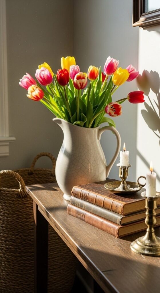 Creating a spring vignette that tells a story isn’t about following rigid rules or copying someone else’s style. It’s about choosing pieces that speak to you, arranging them with intention, and letting your personality shine through.