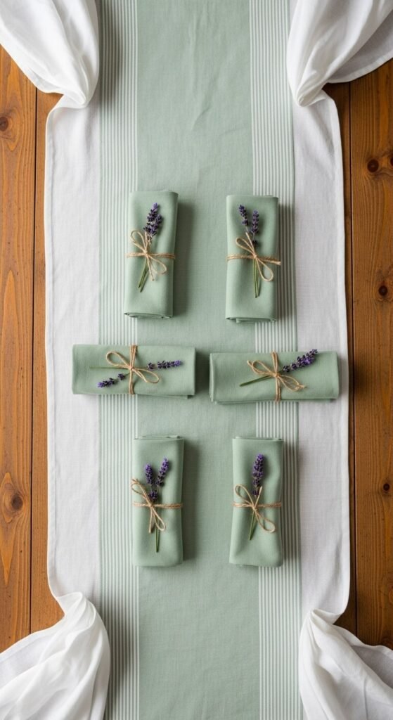 For napkins, don’t be afraid to mix patterns! Pair solid-colored napkins with floral plates, or vice versa. Fold them simply and tie with ribbon, twine, or fresh herbs like rosemary for an aromatic touch.