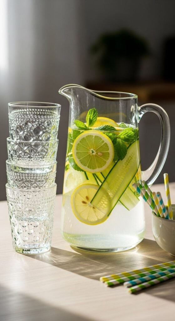 - Don’t forget drinks! Set up a pretty beverage station with a pitcher of infused water (cucumber-mint is so spring) or a signature cocktail