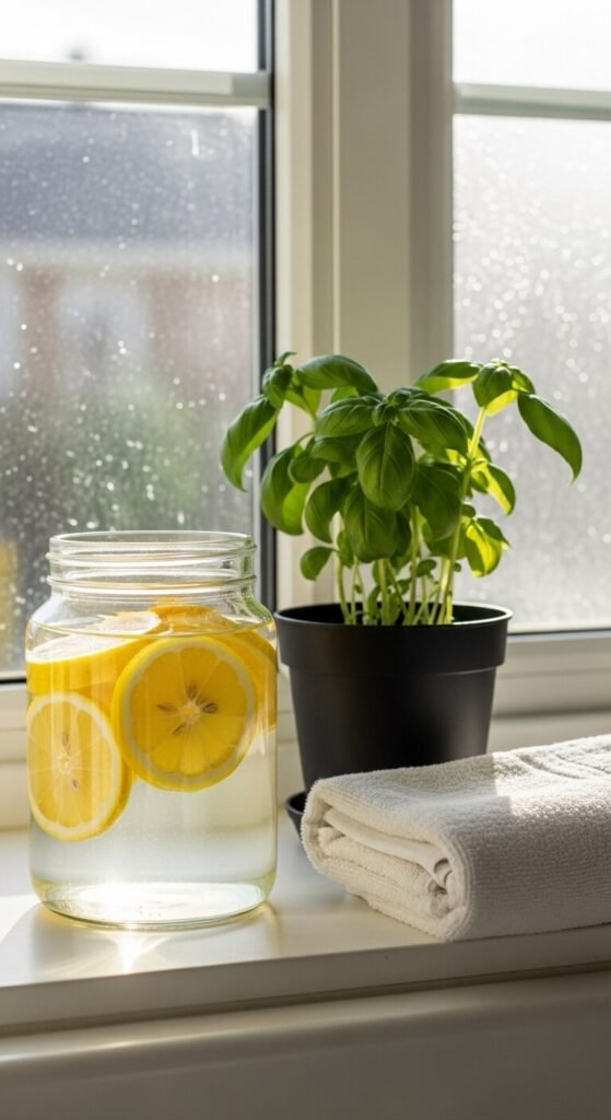 In the bathroom: Fill a small glass jar or apothecary bottle with lemon slices and water for a spa-like vibe. Add a few drops of lemon essential oil nearby to complete the sensory experience.