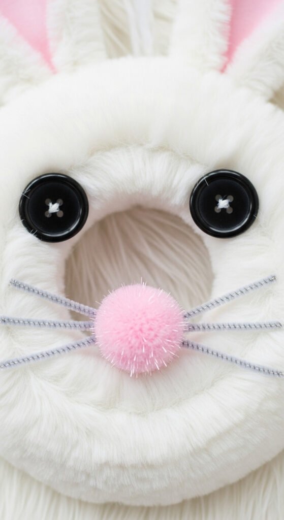 This is the step that transforms a simple wreath into something magical. Cut two large ear shapes from white felt or faux fur — aim for about 8–10 inches tall. Then cut two slightly smaller inner ear pieces from pink felt and glue them centered onto the white pieces.