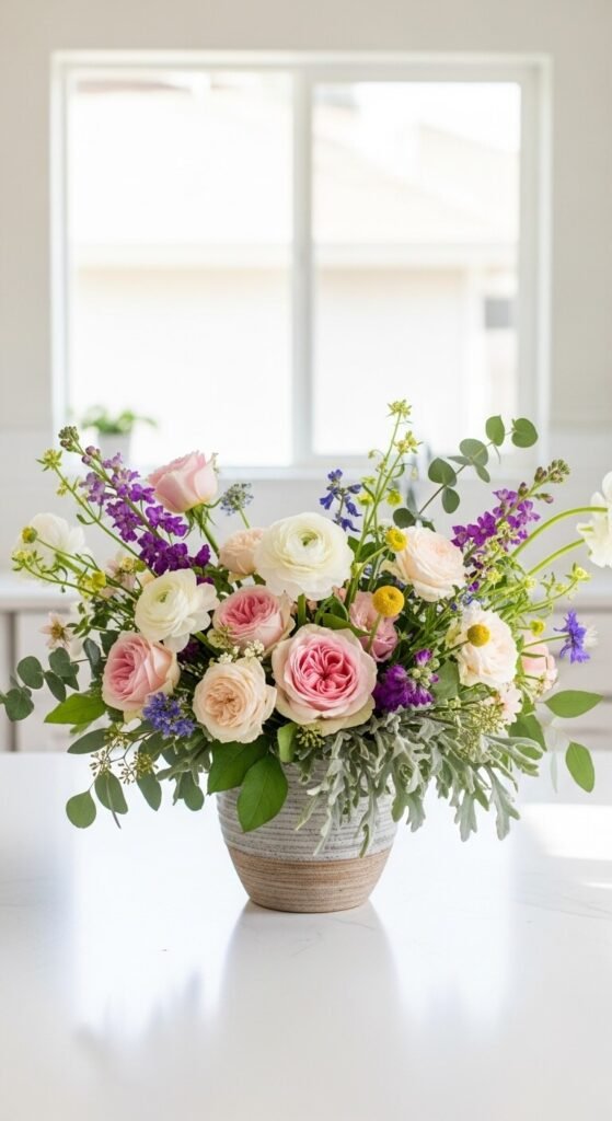 Let a few blooms spill slightly over the vase lip for that lush, just-gathered-from-the-garden look