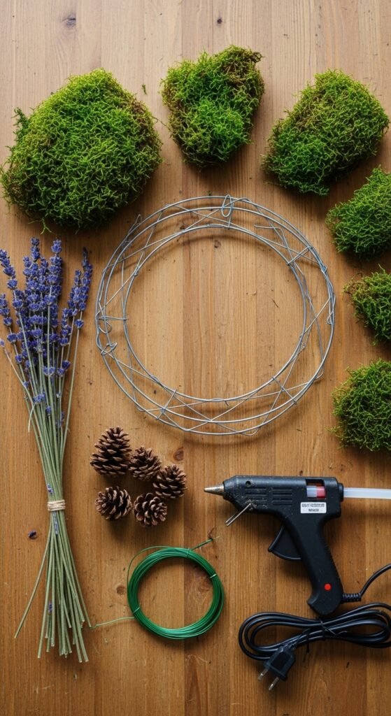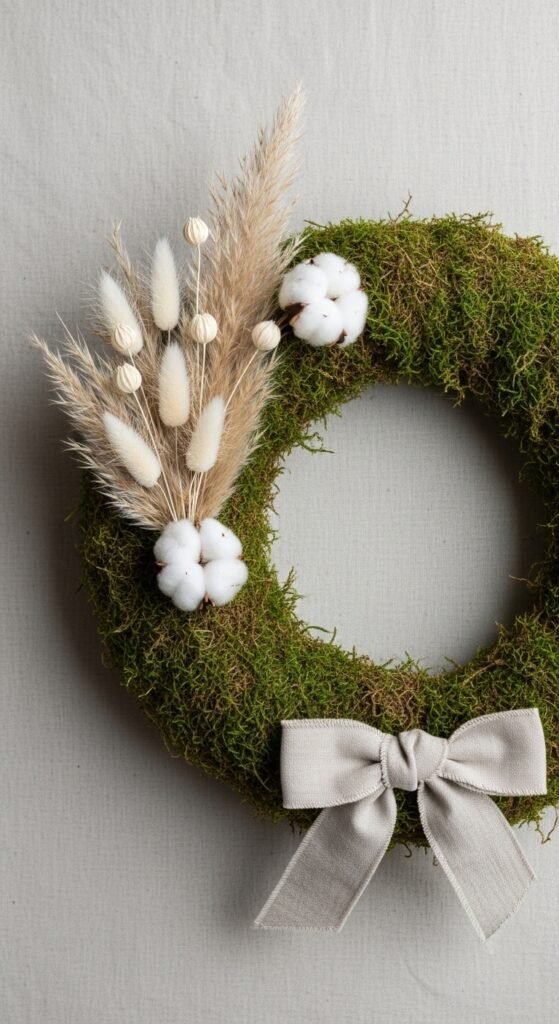 Pro Tip: Preserved moss is the game-changer here. Unlike fresh moss, it won’t dry out and turn brown, keeping your wreath looking full and vibrant for months.