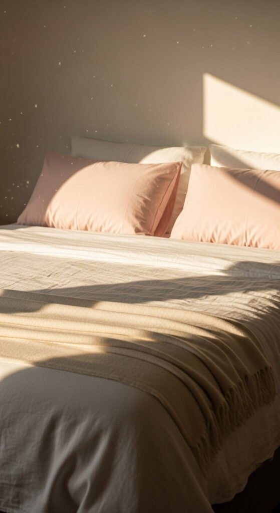 - Swap heavy velvet or wool throws for lightweight linen or cotton versions in cream, soft blue, or pale green